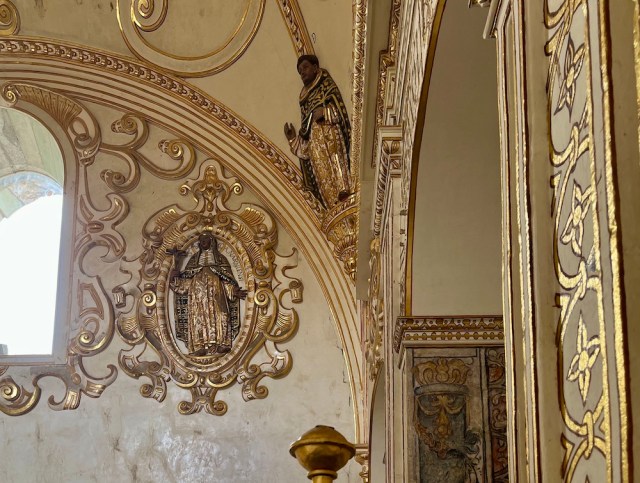 Po bardzo skromnych kościółkach w Gwatemali, szczerze się zdziwiliśmy bogactwem wnętrza kościoła Santo Domingo. Wybudowany w stylu kolonialnego baroku, miał przede wszystkim, cytując naszego przewodnika „wzbudzać podziw”. Hmm, wzbudza do dziś.